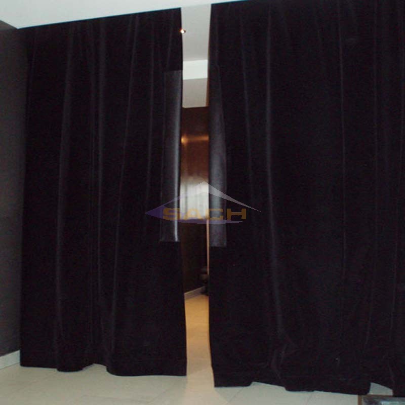 Cortina Oscurante compuesta por tela de algodón ignífugo afelpado a las dos caras.
