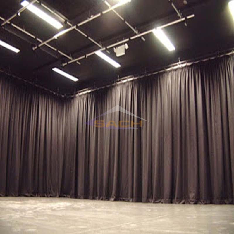 La cortina acùstica esta compuesta por una tela ignífuga cuyo peso es 300 gr/m2