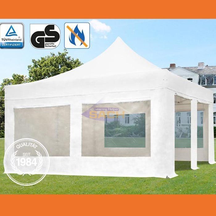 Carpa plegable de 5x5 m  Aluminio  ignífugo / paneles laterales con ventanales, blanco