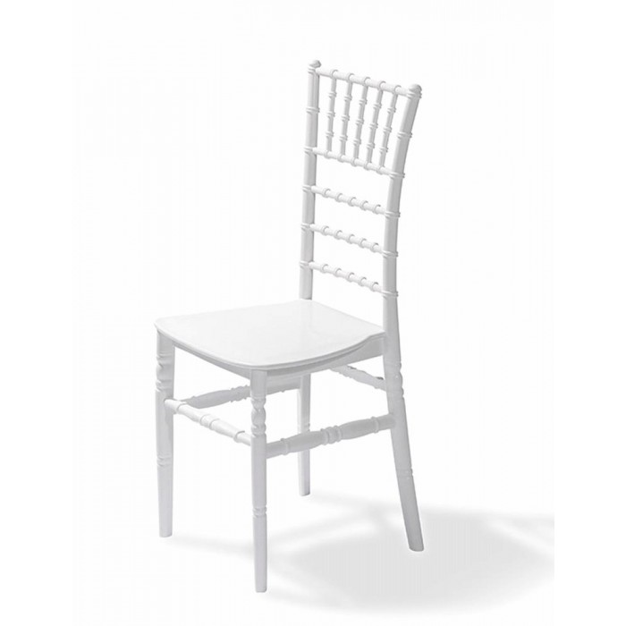 Silla apilable de polipropileno anti rayos UV con diseño de una sola pieza.