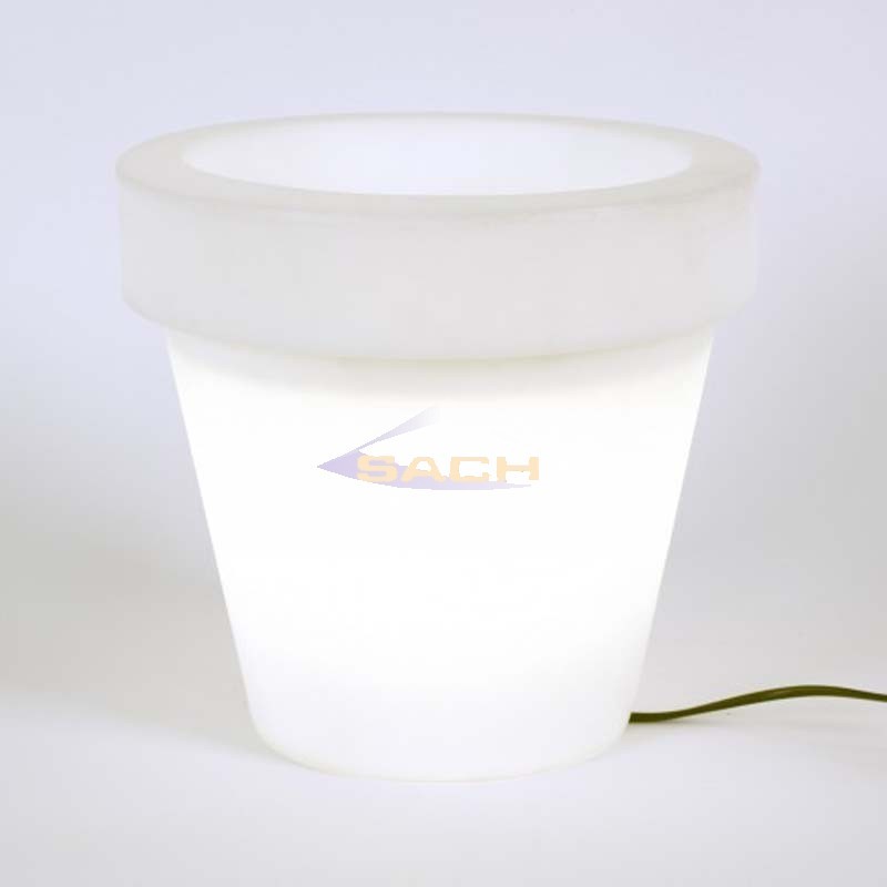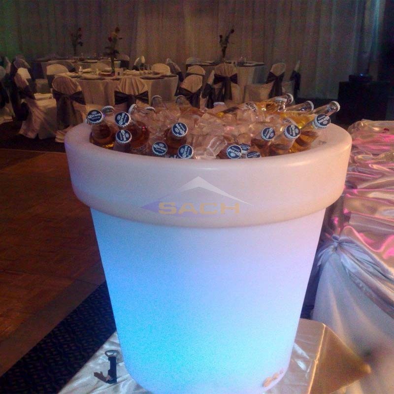 Champanheira com luz led como um plantador de cerâmica feitos de polietileno. Adequada para exterior e interior.