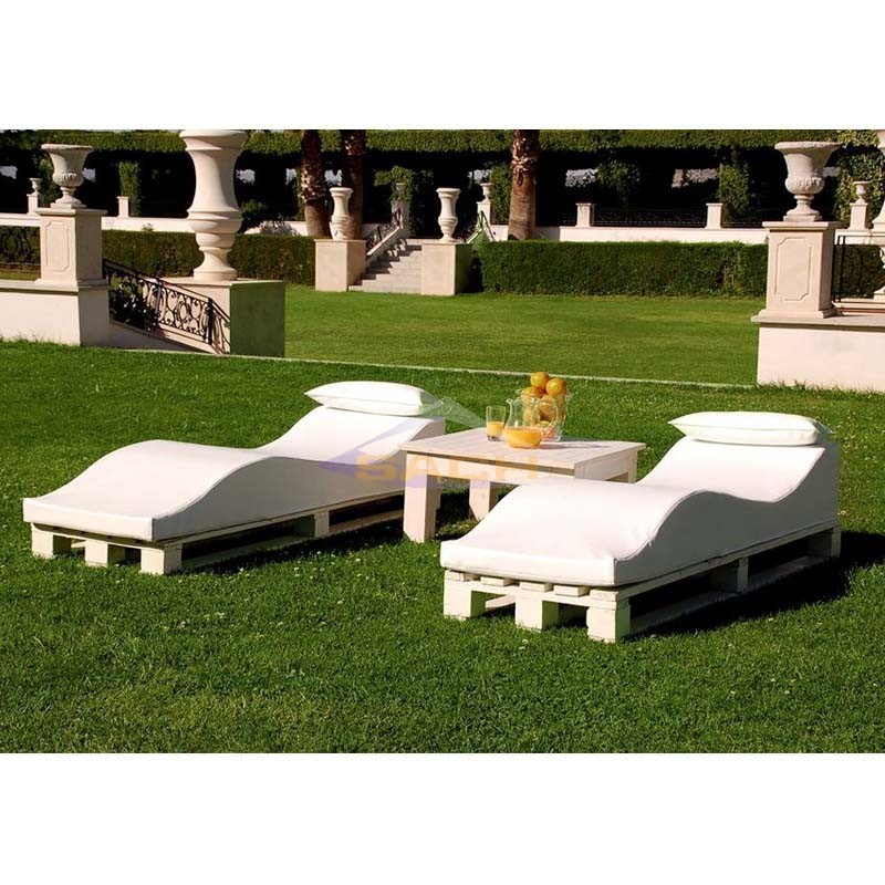 Espreguiçadeira Palet Duna, mais barato e com base de paletes reciclados. Combine-o com o resto do móveis Palet para fornecer terraços, jardins, eventos, etc .. Escolha o revestimento de madeira que você quer e combina com coxins estofadas que você prefere.
