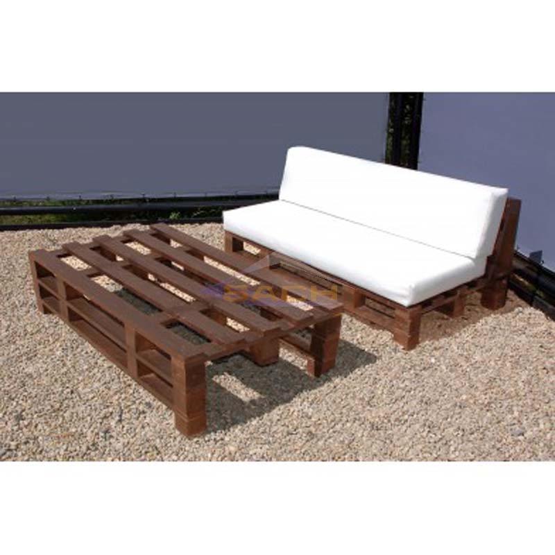 Estrutura: Madeira palet reciclado tratada para uso ao ar livre. Acabamento de nogueira ou lacado branco.