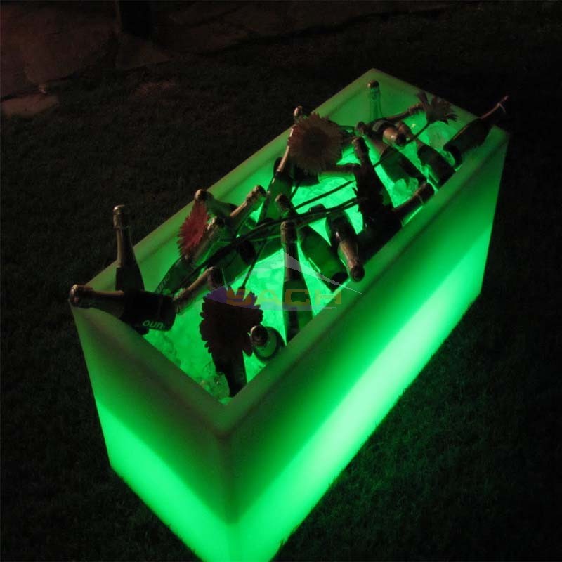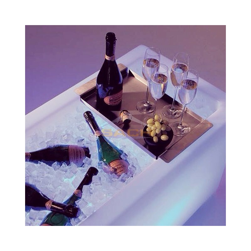 Champanheira iluminado alto e estreito é feito de resina LLDPE, polietileno de baixa densidade linear. Ele tem uma alta resistência a temperaturas extremamente quentes ou frias, sendo adequado tanto para interior e exterior sem esquecer o meio ambiente porque nossos produtos são 100% orgânicos e recicláveis.