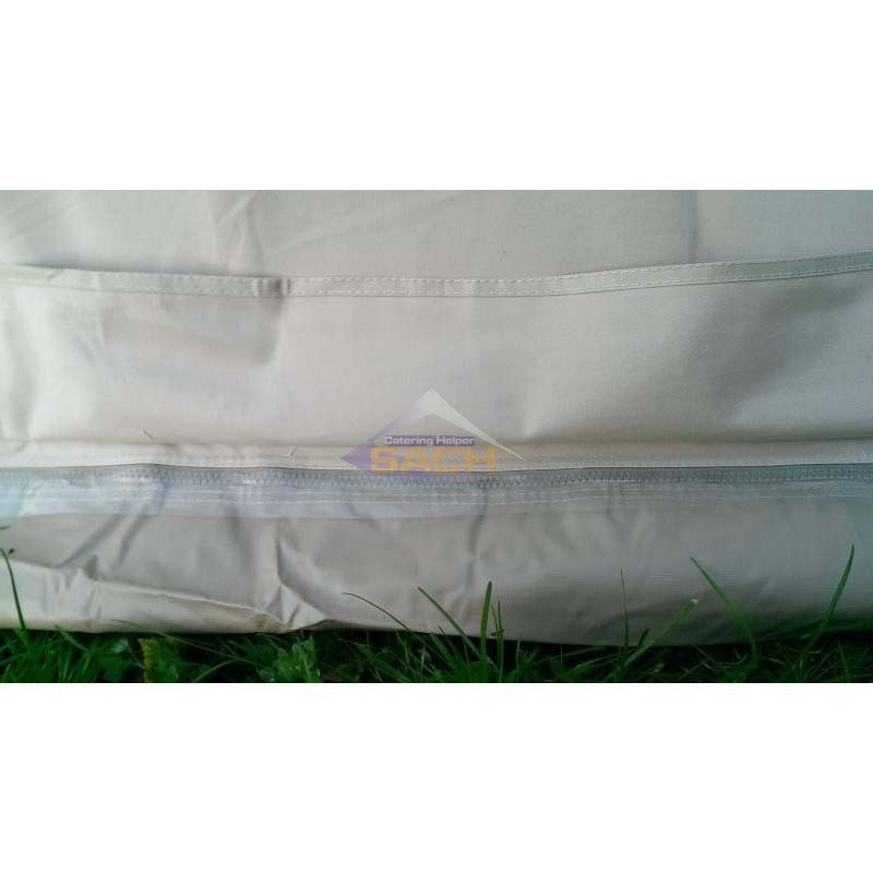 Equipado com um solo resistente conectado à tenda por um zíper. O chão é feito de PVC e pesa 540 g / m².