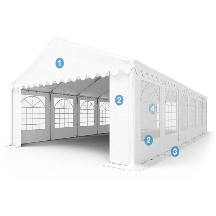 A extraordinária estabilidade da tenda gazebo profissional PROFILine confere-lhe cerca de 50% mais de aço, incorporado nos seus tubos de aço extra-fortes e nos elementos de reforço adicionais na área do telhado e do piso.